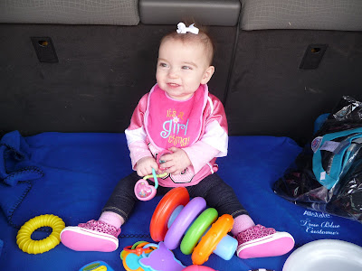 We woke up bright and early on Sunday morning to get everything ready for tailgating and the game. This would be Lottie's first tailgating experience and game. She did so well and might I add looked cute as a button in her jersey and pink cheetah shoes!!! It was pretty warm where our seats were so we didn't know how long we would last, but we made it through until about half of the 4th quarter. She ended up getting pretty sleepy during the game and probably took a 20 to 30 minute nap on Steve's chest. It was so cute! We are going to try and get her to at least one or two more games depending on the weather. All in all it was a great family day out!!